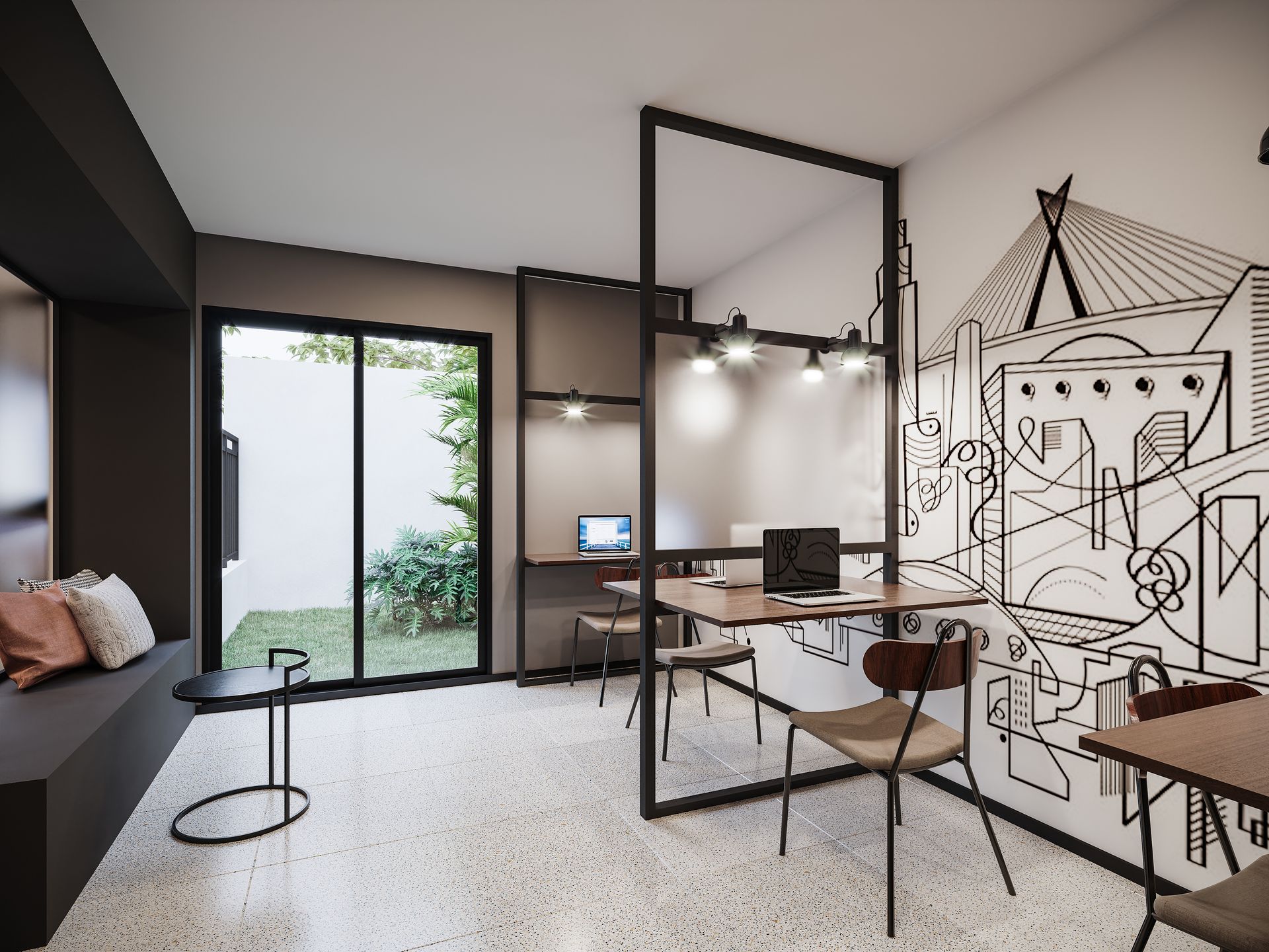 Coworking com sala de reunião, Espaço delivery, Sky lounge